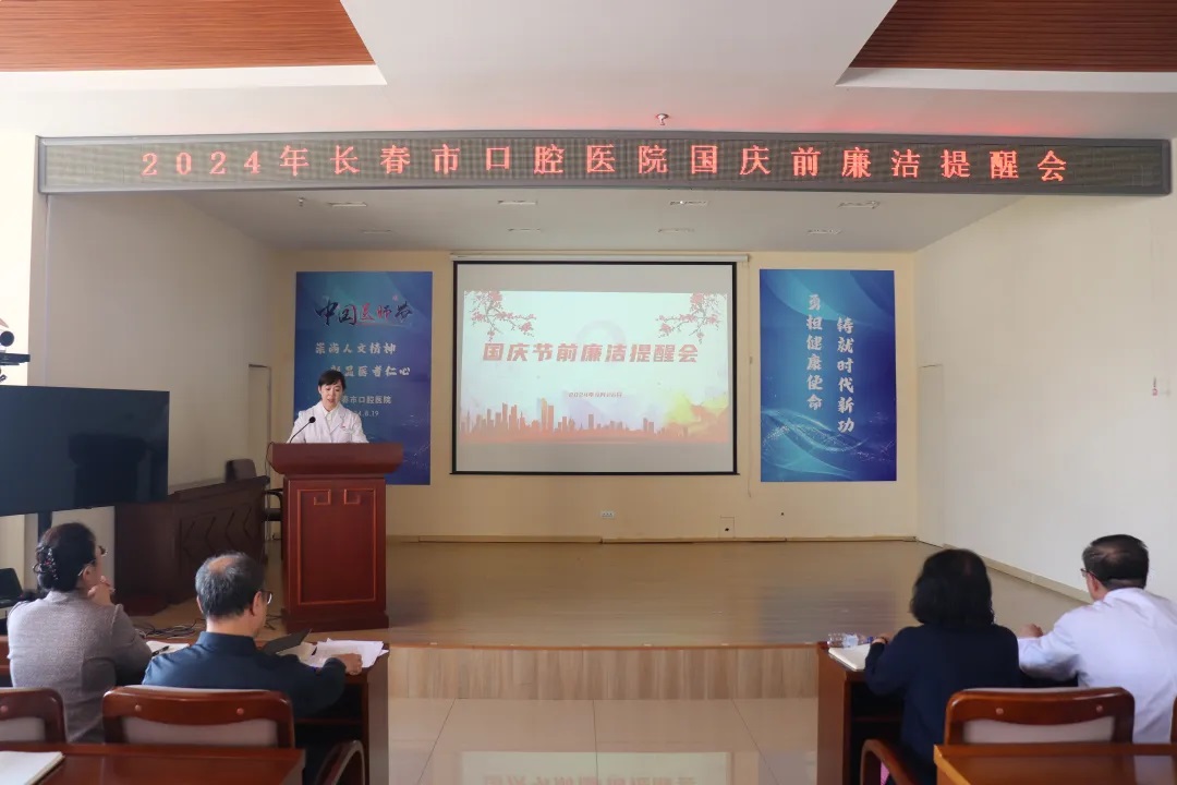 9月26日,长春市口腔医院召开了节前廉洁教育和安全生产等重点工作部署会,全面推进各项保障工作落到实处,全力营造安全稳定的节日环境。院领导班子成员、全院各科室主任、副主任、负责人、党支部书记、护士长等参加了会议。